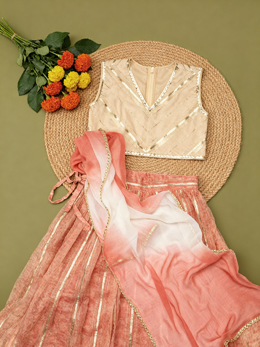 Gul Girls Peach Blossom Lehenga Set